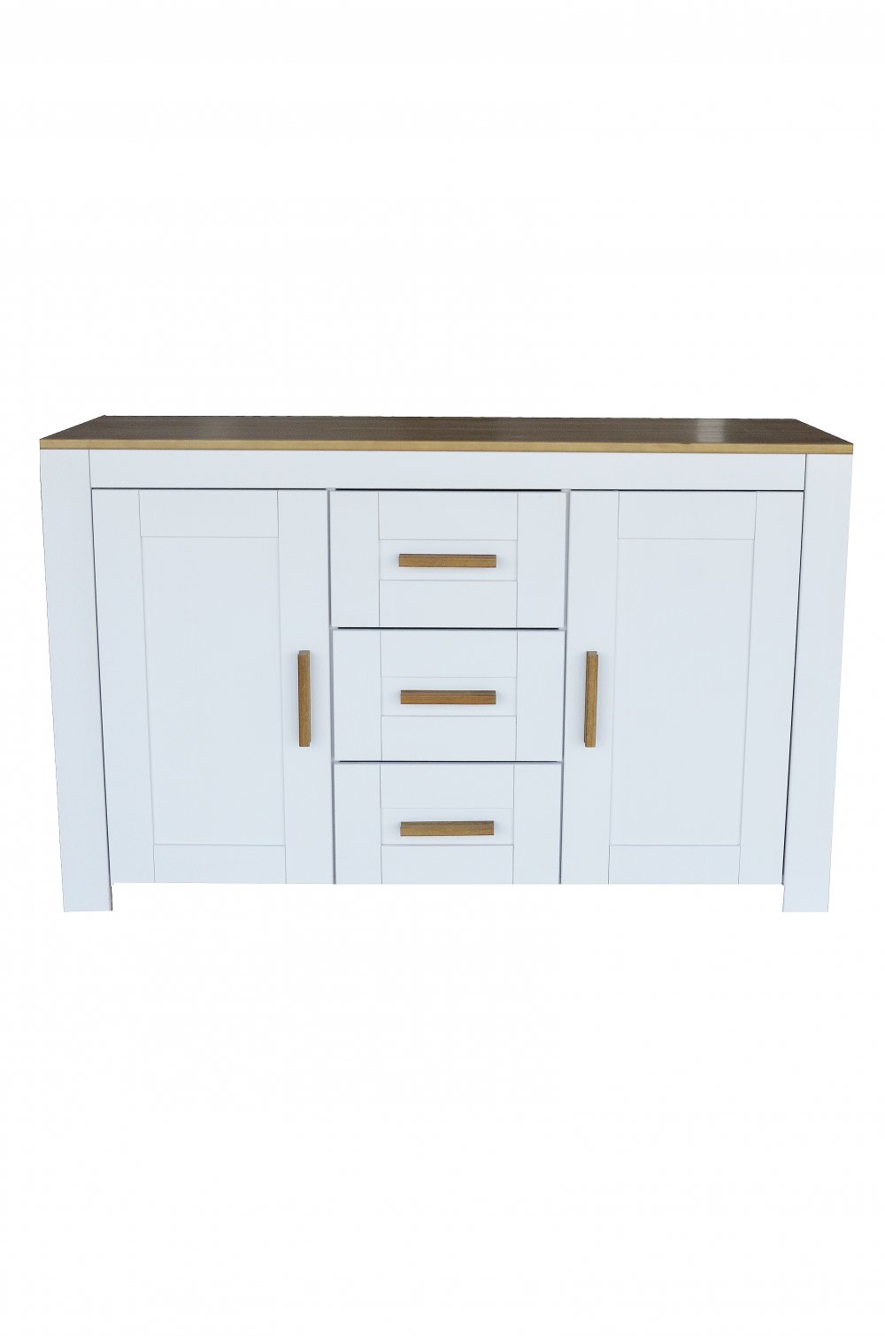 01. Komoda 2D/3S sosnowa, biała/blat jasny dąb
